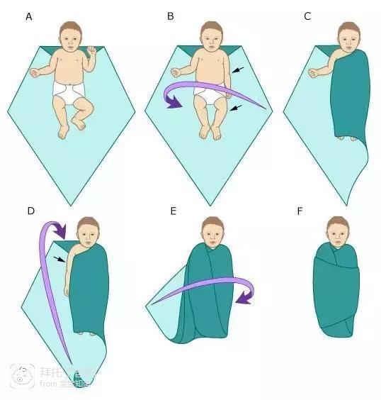 注意,包巾一定要是单层的布,不可以用被子或者毯子包裹婴儿: