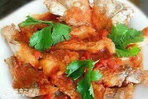 红鲷鱼、芹菜叶、姜、小麦面粉、食盐、料酒、生抽、番茄酱、白胡椒粉、植物油