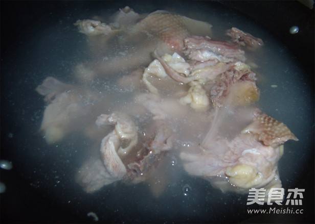 蘑菇土豆炖鸡块的做法 1. 将仔鸡剁好后,用开水煮去血水。