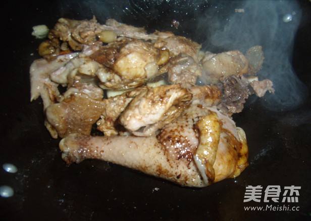 6. 倒水漫过鸡肉一个指节,中小火炖30分钟。