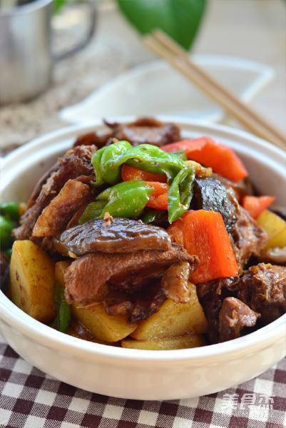 7. 30分后再倒入切成滚刀块的土豆,焖10分钟。