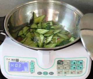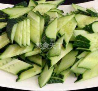1 黄瓜洗净,切菱形片。
