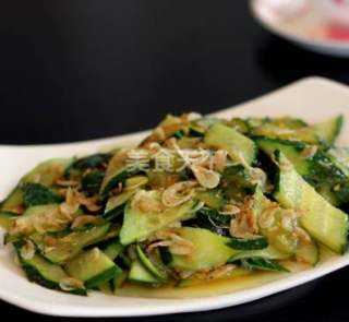 5 放入虾皮、黄瓜片。