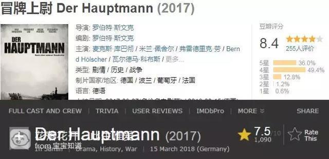 该片在豆瓣上获得了8.4分,IMDB获得了7.5分