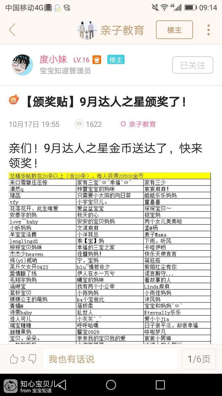 果然,我的问题刚发出来,第一时间就有好心的亲友告诉我解决的方式,还明确的告诉我要找达人邀请奖励/申请PC端权限/群……的宛妈直接反馈。既然是要反馈,我可是要再确认一下,因为宝宝知道的工作人员那么忙,我可不想冤枉了她们。这样我又看了第三遍九月达人之星颁奖帖,结果依然如此耻亲,名单上还是没我。