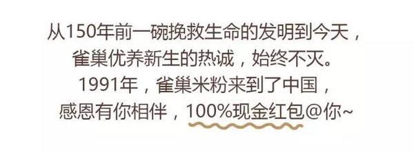 *活动期间,在任何门店或电商网站,购买雀巢金装宝贝营养+米粉(不限金额),上传购物小票或收货单,加入巢妈团,一个工作日内即可领取最低8元,最高150元微信现金红包。炼编尺( 100%中奖,其中150元中奖概率1%, 8元中奖概率20%,其他局锈金额中奖概率79%。)每个微信号限领1张优惠券不可与其他优惠共享。
