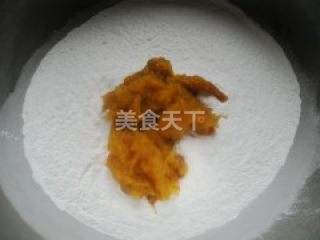 2 蒸熟的南瓜压成泥成加入糯米粉中