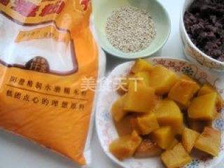 undefined糯米粉 适量 红豆沙 适量 南瓜 适量 芝麻 适量 食用油 适量