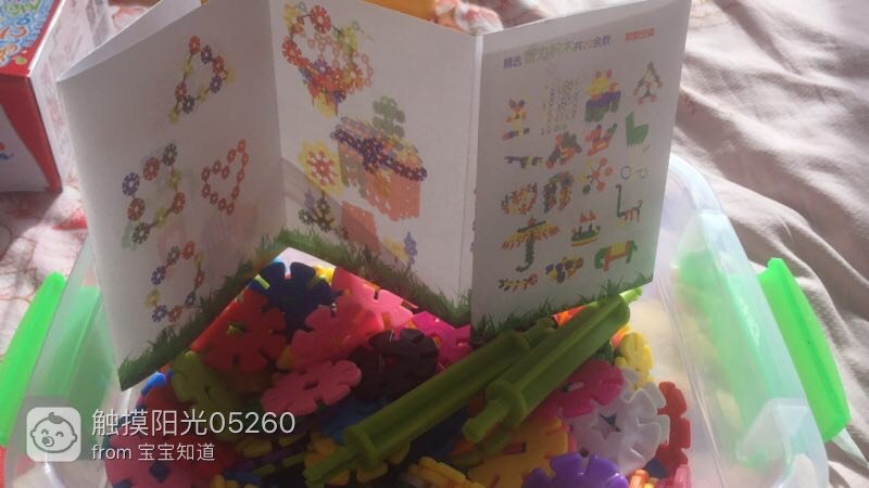 现在天天教宝宝数豆豆,以后可以用雪花片教她数数了,在我了用担心豆豆找不到了,等宝宝上学以后可以用这个给她拼出数字,可以拼出圆形三角形等,叫他认识一下形状,雪花片孩子必不可少的玩具。