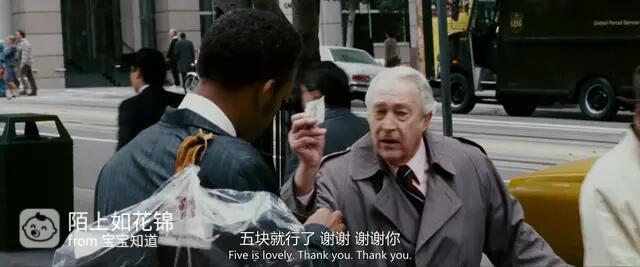 第二次,饥寒交迫、居无定所的克里斯在生活的摧残下,已经走上了卖血的道路,但他依旧帮弗洛姆先生付了出租车的五美元。无论何时,他选择真诚与善良,不愿撒谎,更不要丢掉本来的自己。