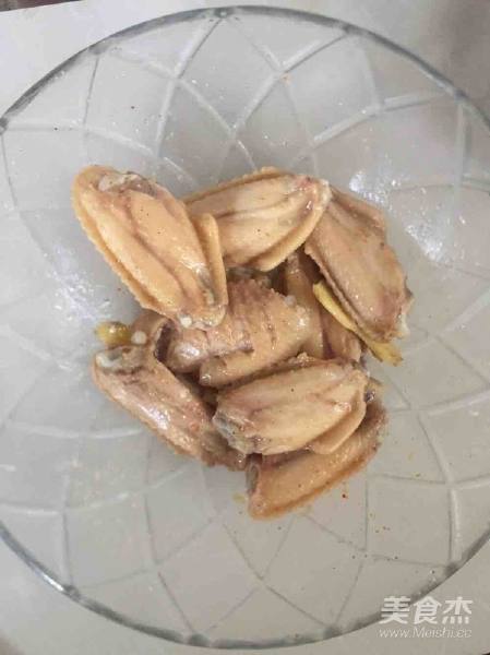 5. 腌好的鸡翅放面粉碗里滚一圈