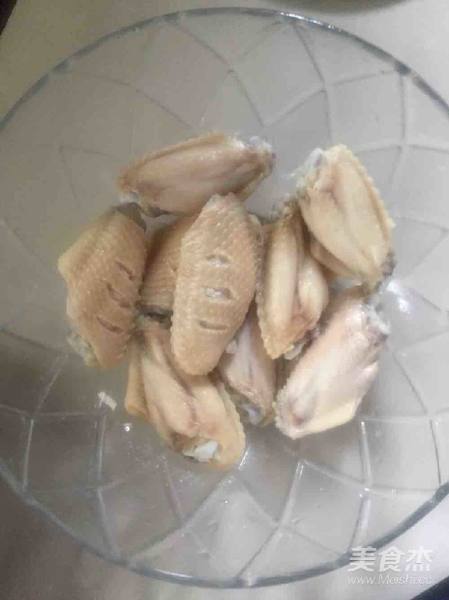 3. 鸡翅里加料酒,盐,糖,生抽,蚝油,白胡椒粉,生姜腌制一小时左右