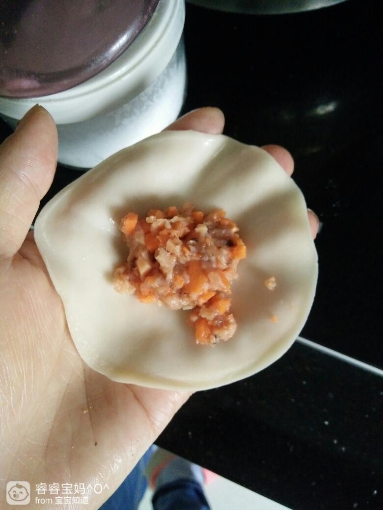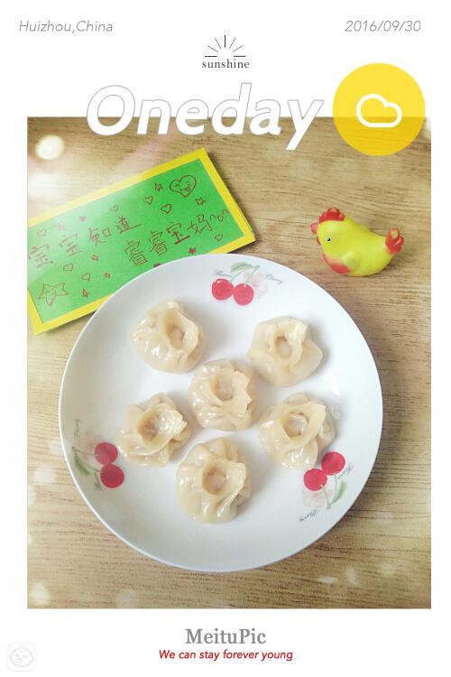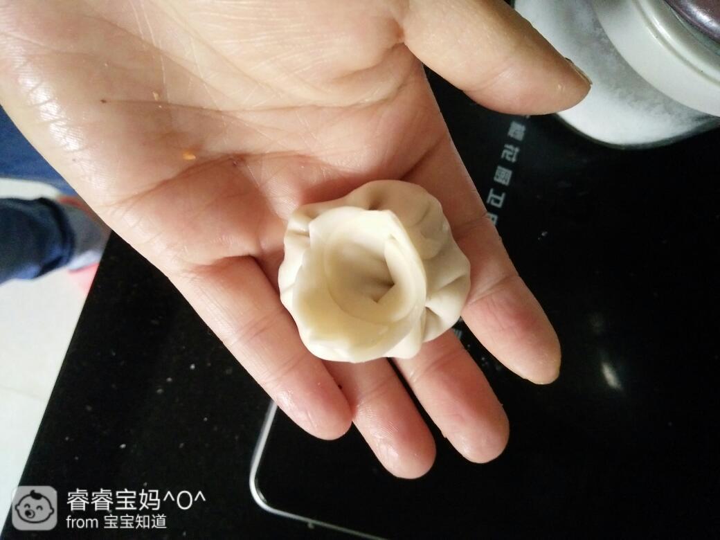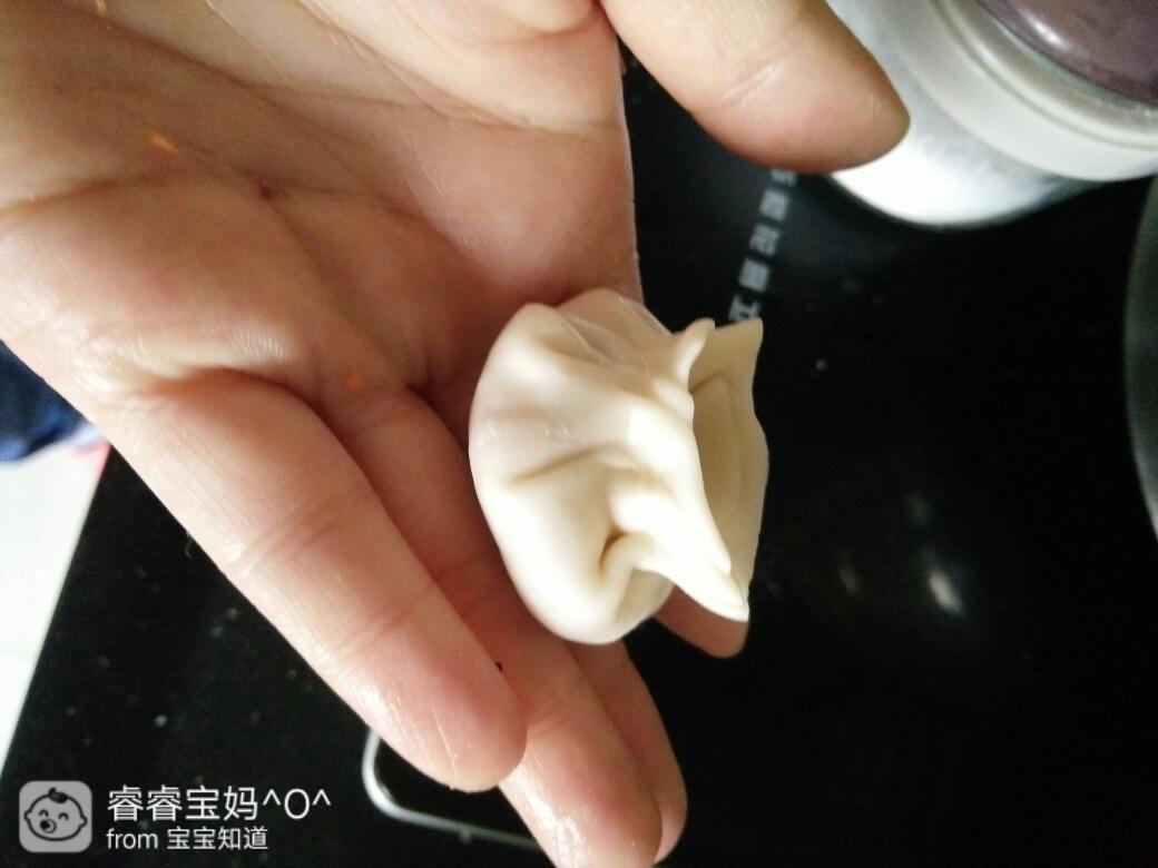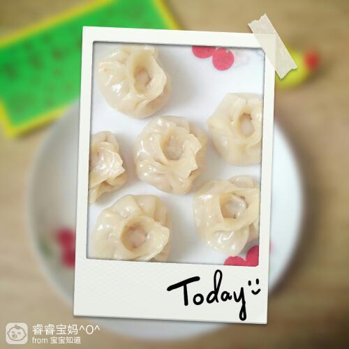 六个小包子被睿宝手拿着吃完了,真的是很好的手指食物,锻炼了宝宝手指,又能享受到自己吃饭的乐趣。懒的和面,就直接用饺子皮吧