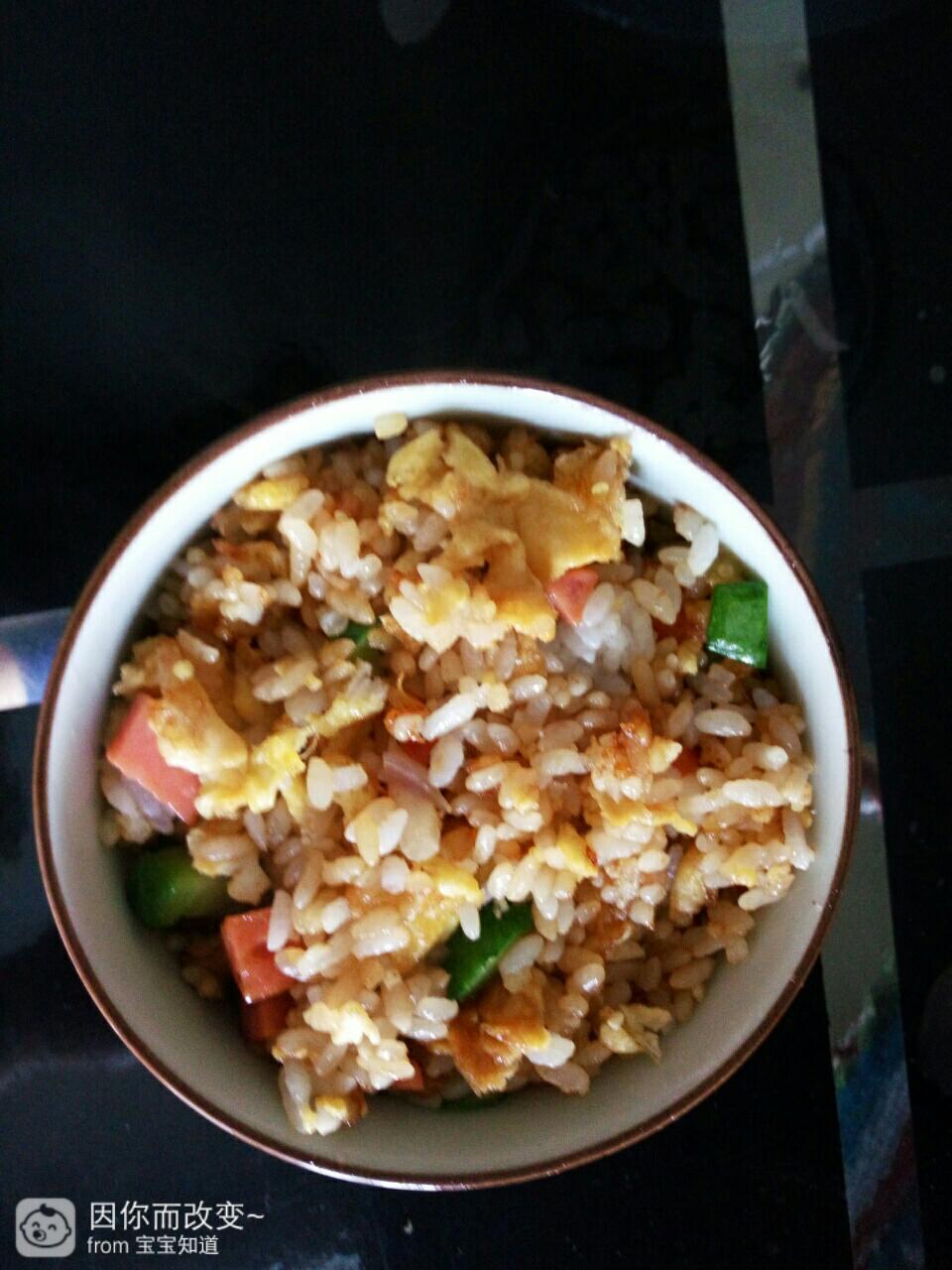 早上和宝宝吃的蛋炒饭,为了能够剩荒吃的营养一些,里面放了黄瓜,火腿肠,要比平时更好吃一些