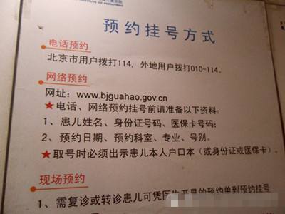 预约挂号:电话预约拨打114,网络预约需提供证件,现场预约针对于复诊或转诊宝宝