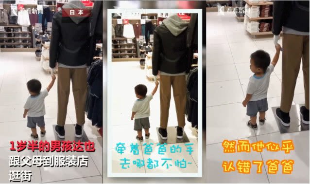 近日,一名日本网友上传了一段“儿子认错爹”的视频,场面“温馨”、搞笑,并写道:“那是假人不是你爸爸!即使你抓着他的手指着想去的地方,他也不会带你去,你亲爸在后面..……”