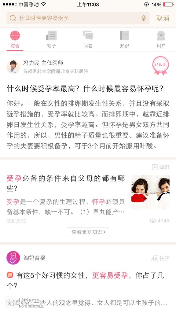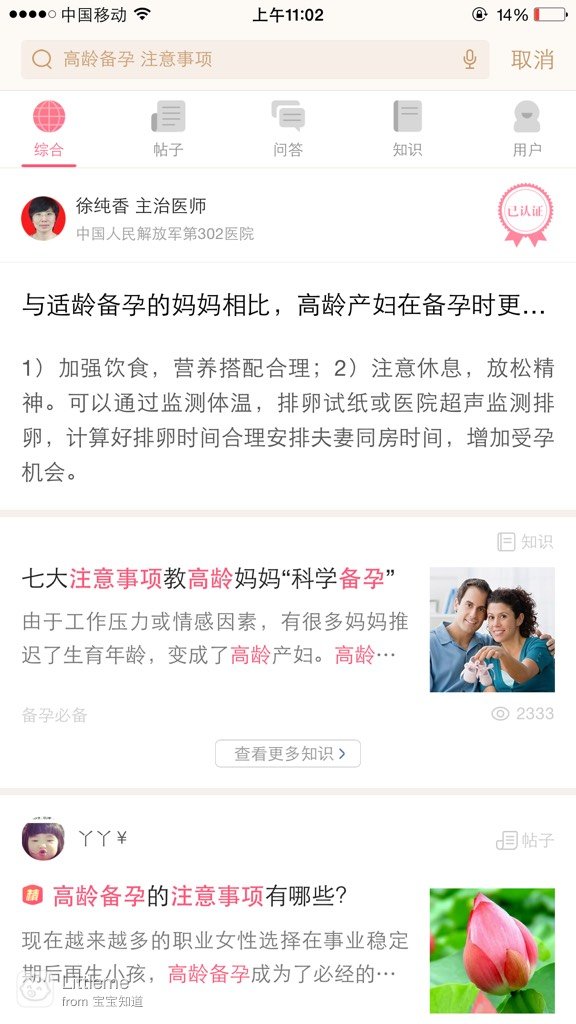 嫂嫂用了这个软件之后,还跟我说的确是挺好的,很多备孕时候需要注意到的东西,在里面一搜,就可以搜出很懂知识来,而且很多都是专家的建议,很有权威性。除了备孕,还有一些孕育,还有产后的事情,这让嫂嫂原本忐忑的情绪,也平复了下来,反正很多不知道的东西,都可以在上面查询。如果你也是高龄产妇,正在愁着怎么备孕,需挤崇要注意什么,什么时候最容易怀孕,等等,不妨下载宝宝知道吧,可以为你的备孕之路,走得更加顺畅,帮助你找到方向。