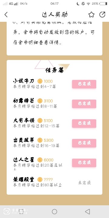各位宝妈完成20精华帖了没?没有的赶紧抓紧期间了,不然80精华就不好整了,完成20精华就可以得到2万多的金币呢,最喜欢金币哗哗入账的感觉了。