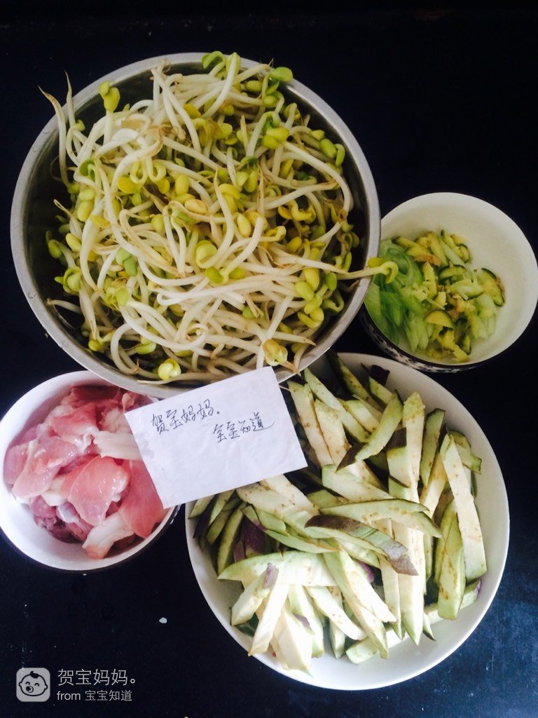 食材:黄豆芽、猪肉、茄子(茄子是插曲,这个茄子兔阶坐放了好几天了,再不吃就坏了,所以擅自加进去了