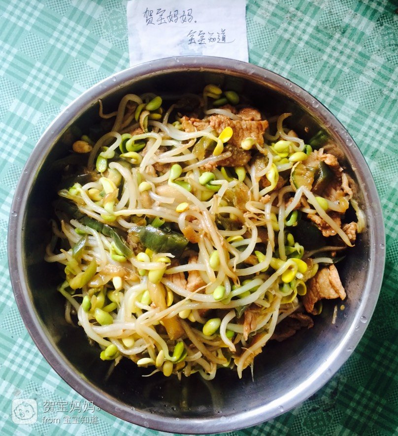 黄豆芽炒肉,味道不错,因为量大,就直接放盆里了,没有装盘。其貌不扬,但是味道真的很好哟,有时间试试吧。