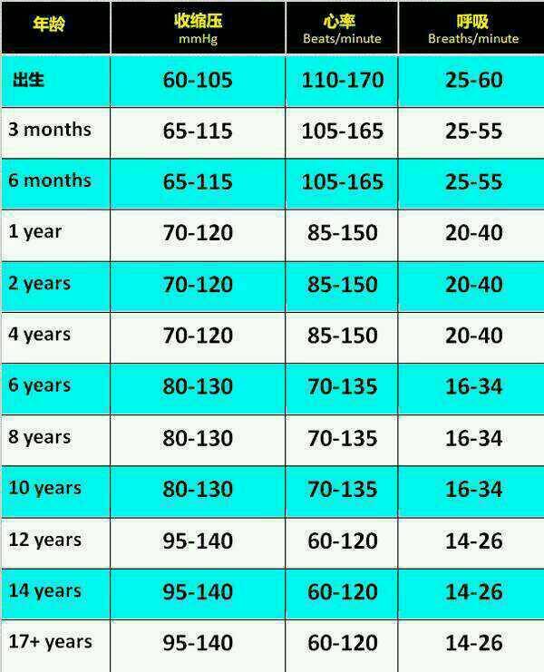 从这个表中,我们除了了解到孩子的心跳呼吸比成人快以外,还能看到另外一个数字变化,那就是血压,表格中的数字是收缩压(高压)的区间。小朋友的血压比成人低很多,大部分高压只有80左右。因为小朋友心脏力量弱,血压低,所以血液到不了手脚部分,这才是手脚发凉的原因