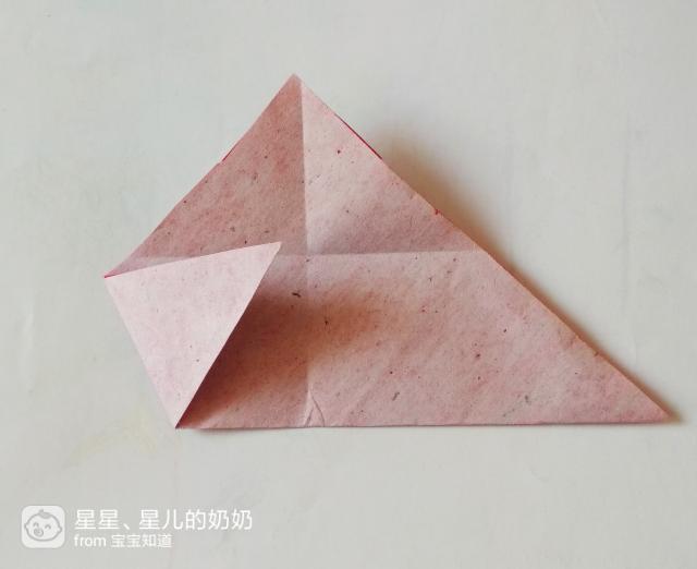 将折纸的右边向左折,与折纸上层的边对齐,如图。