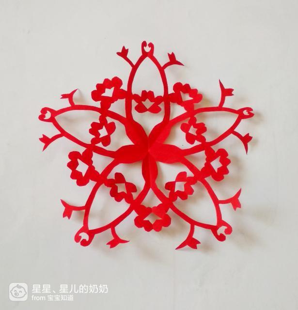 将剪好的图案全部打开展平,这个剪纸红梅花儿开就完成了,如图。
