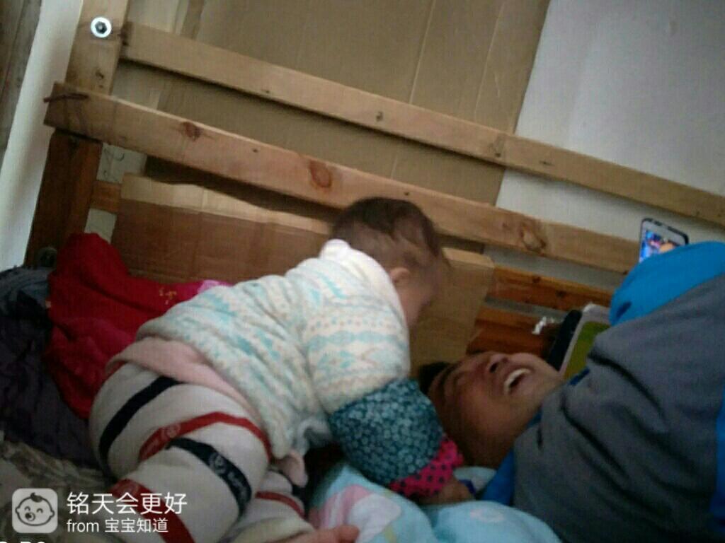 今天中午,我们都在床上玩,他自己爬过去,然后把头往老公头上碰,哈哈,把我们笑坏了,老公说头某裁糟被宝宝敲疼了,而宝宝却乐得来来回回往老公身边靠,并用头碰头。