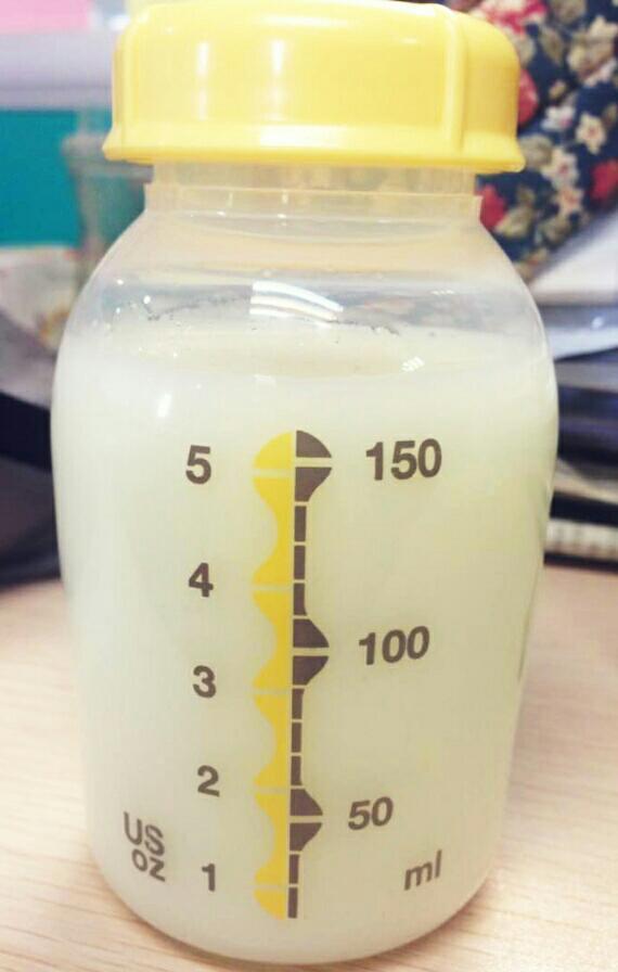 熙熙是早睡早起的孩子,我上班以后就开始添加辅食,6-12月的孩子大概保持每天600-800ml的奶量,我每次吸奶两边各吸100-150ml,孩子每天早上睡醒和下午睡醒分2次喝我每天挤的奶,如果是中午无法回家的妈妈,就建议中午增加多1次吸奶,瞧我这安排,我被自己的智商感动了!