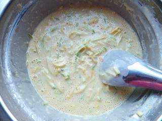 2 瓜加盐腌一会,入味,加鸡常急絮蛋和少许水。