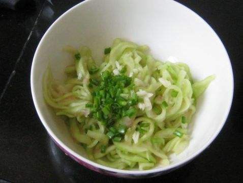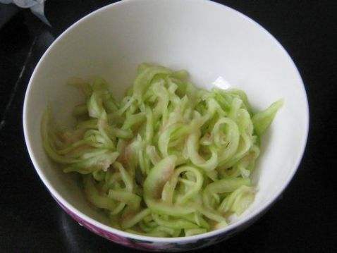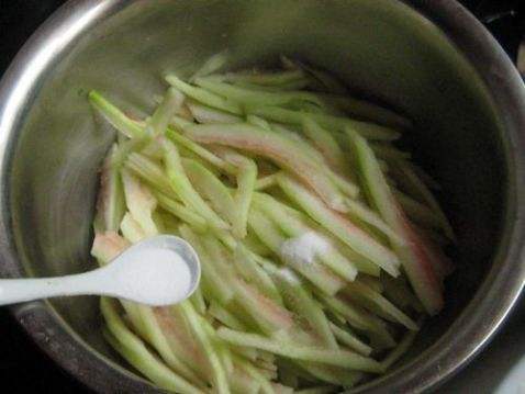 2. 切成丝,放盐抓打一会儿