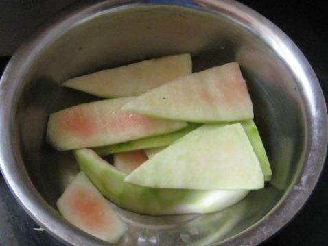 麻辣西瓜皮的做法 1. 西瓜皮切去表皮,去生抹耗囊,洗净