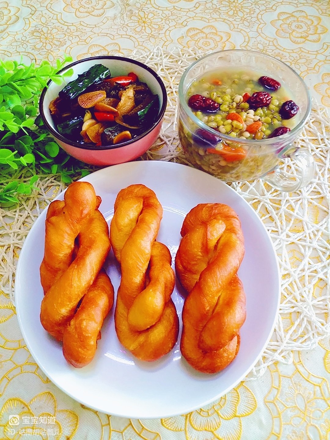 小麻花是昨天做的,虽然是凉的,不过比热的时候还要好吃一些,外酥里软的口感,一点都不会因为凉而变得硬邦邦,用来搭配绿豆粥,再吃一点小咸菜就是很美味的一顿早餐,虽然简单,不过都是我比较喜欢射岩的。