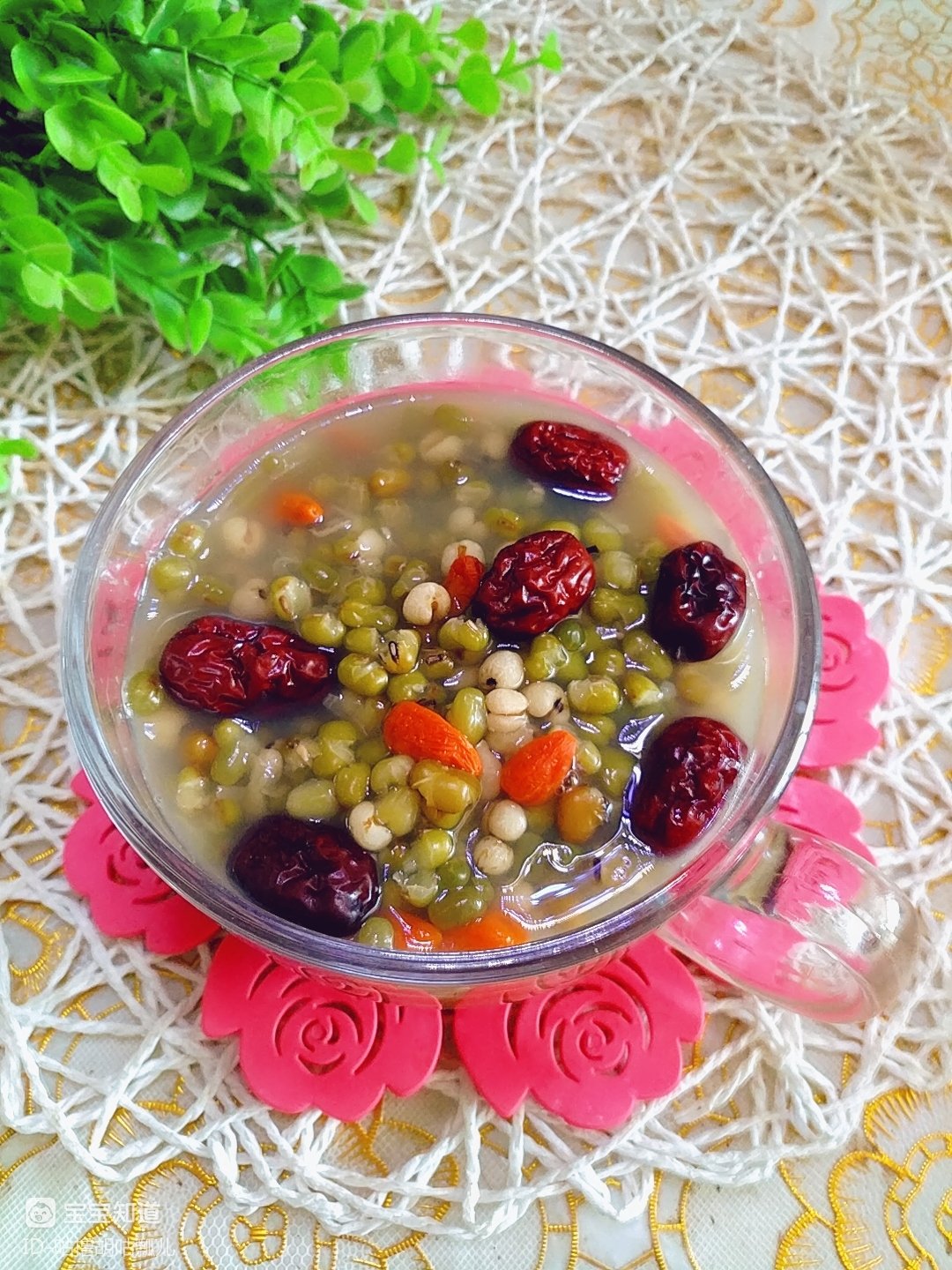 绿豆薏仁汤,我把它煮好了然后上面的汤滤出来直接当做水喝,这些绿豆之类的就可以当做粥来吃了,这样出门携带比较方便,就不用到哪都得拿个勺子了。