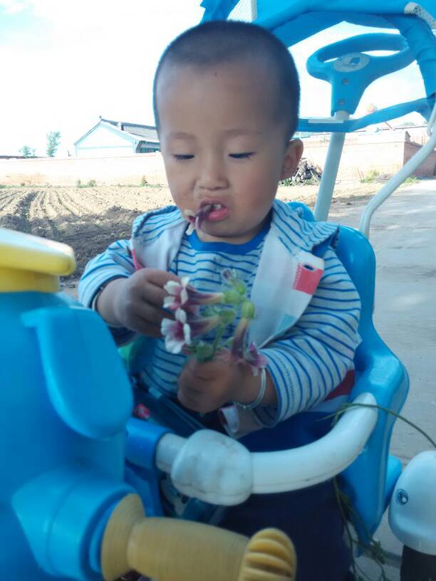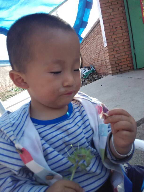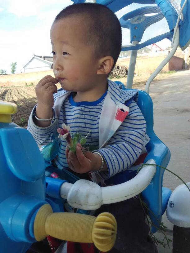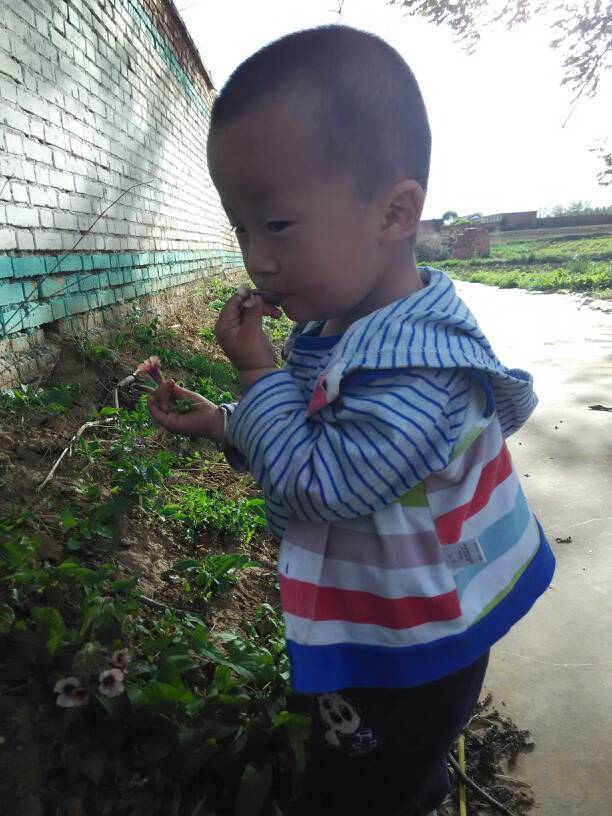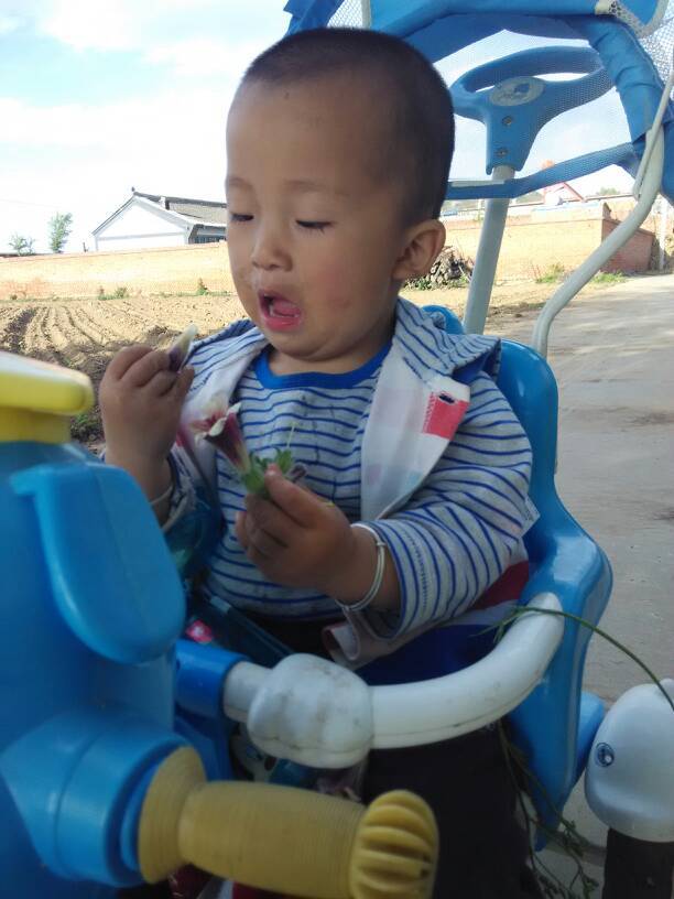 儿子看见了,不干了也要吃,儿子啊!怎么忘了这个吃货了我给儿子摘下一个尝了尝。他应该也觉得味道不错,这下一发不可收拾吃上瘾了