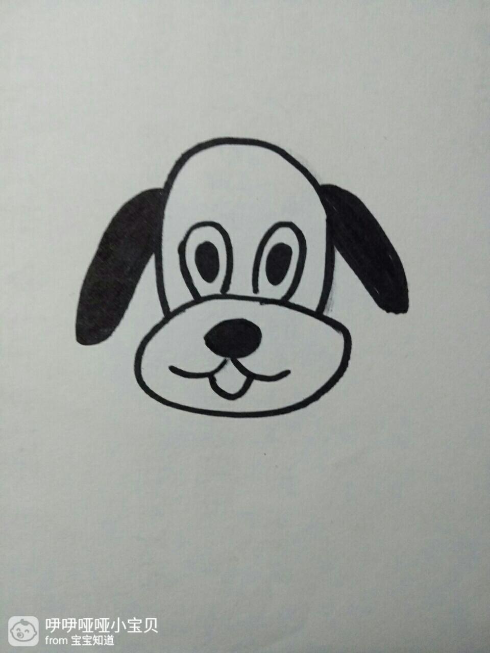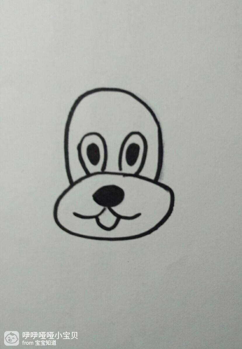 第四步:画上狗狗的大鼻子还有嘴巴