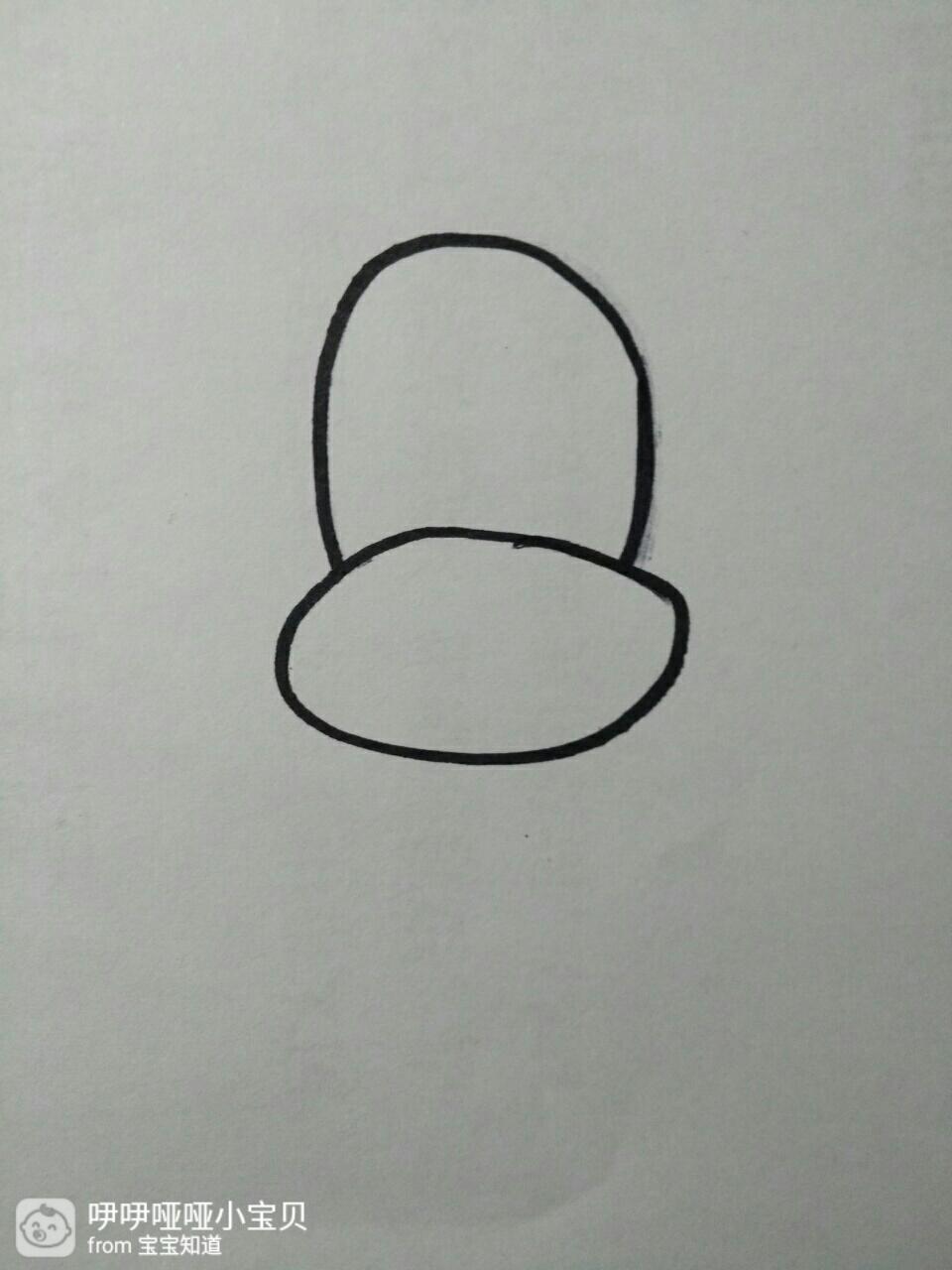 第二步:在椭圆上面画半个竖着的椭圆,表示狗狗的头部