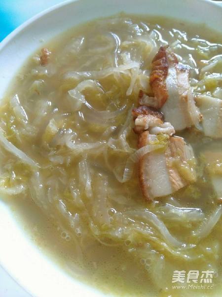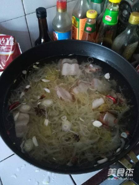 5. 尝尝酸菜差不多了就可以放粉条了,等粉条熟了,放些鸡精就能出锅了。