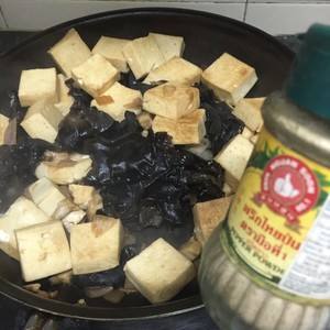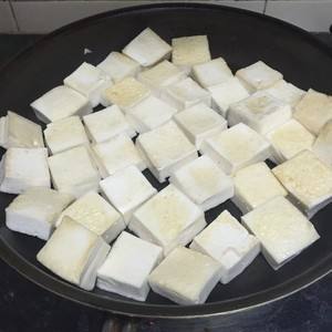 热油锅,倒入豆腐,煎至两面微黃,盛起备用
