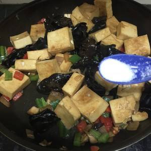 千页豆腐、云耳、洋蔥、青红椒洗淨切好备用