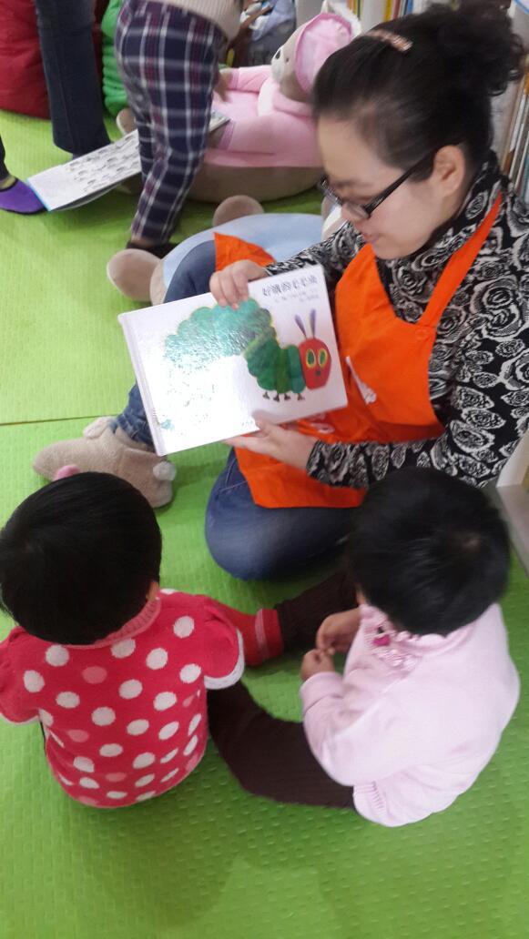 洗手回来看到那么多书,小妮们不走了,好吧,让阿姨给你讲个 好饿的毛毛虫吧