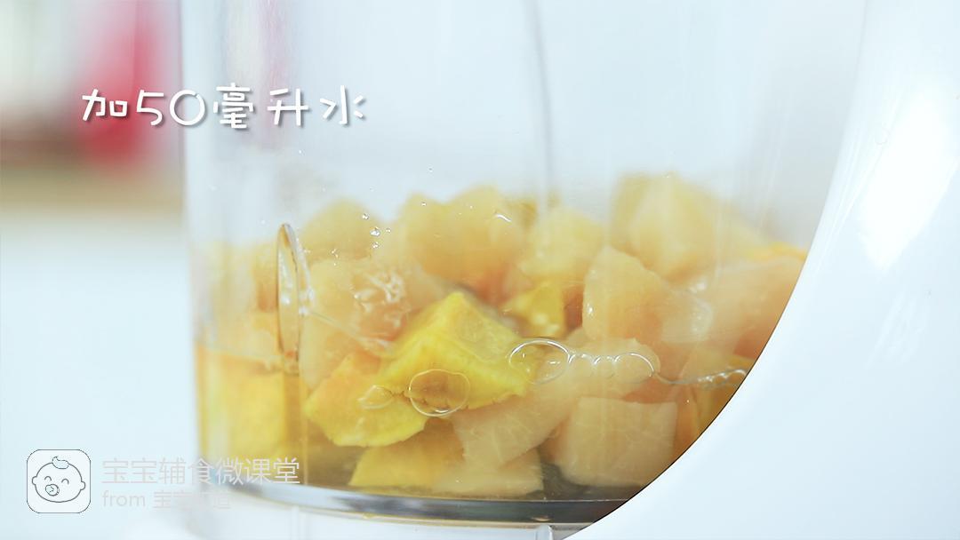 7.将蒸好的番薯、苹果倒入辅食机内,加50毫升水。