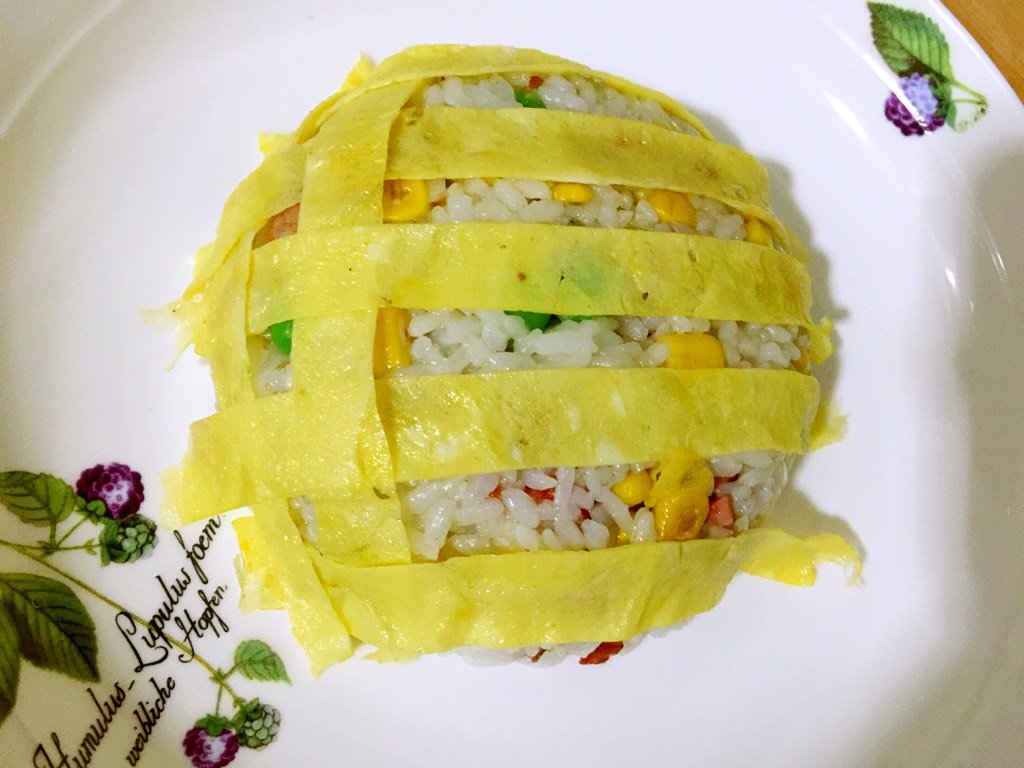 2个宝宝 LV.24用筷子把多余的蛋皮压到米饭底