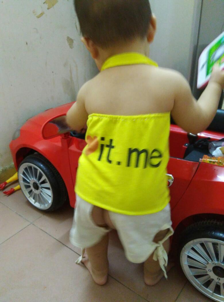 用秋天的剩用编肿刺旧T恤给宝贝做的露背装 求点赞 谢谢抓贵