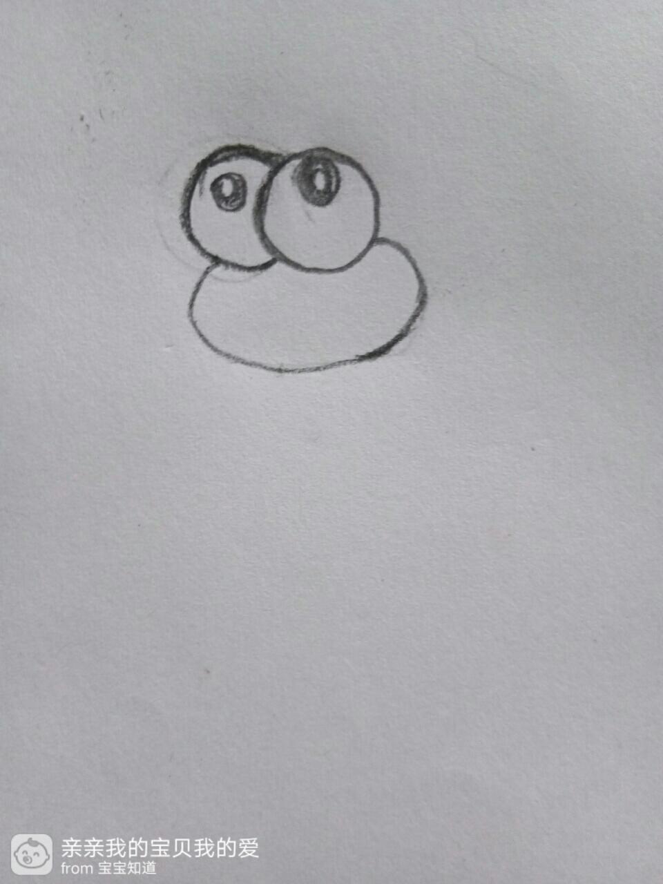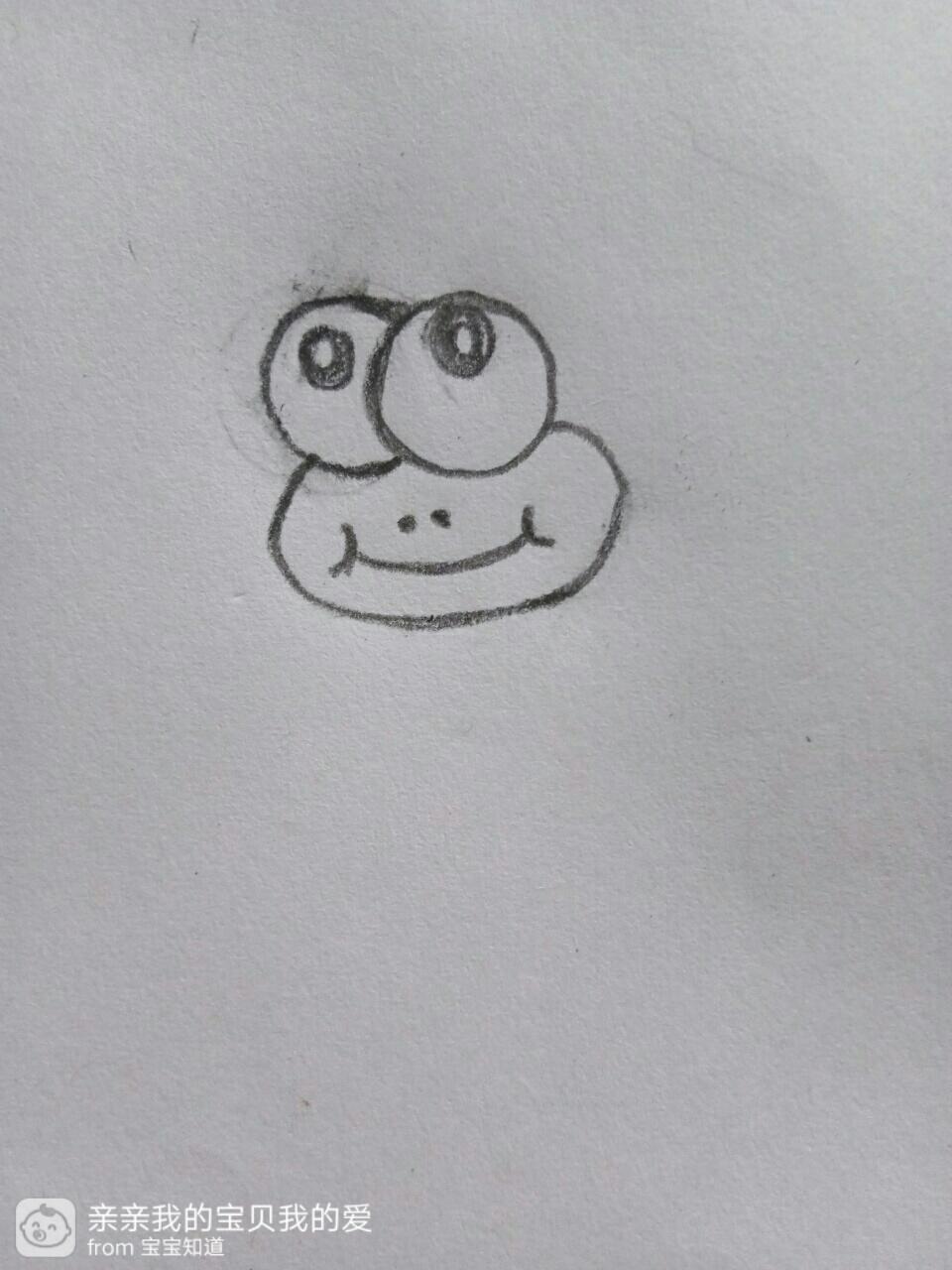 步骤2:在画上青蛙的脸部,画个半圆上连接上青蛙的眼睛,如图所示。