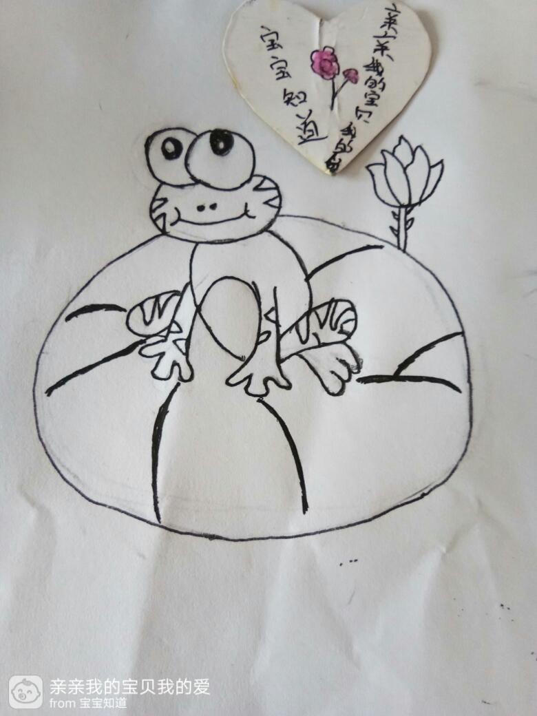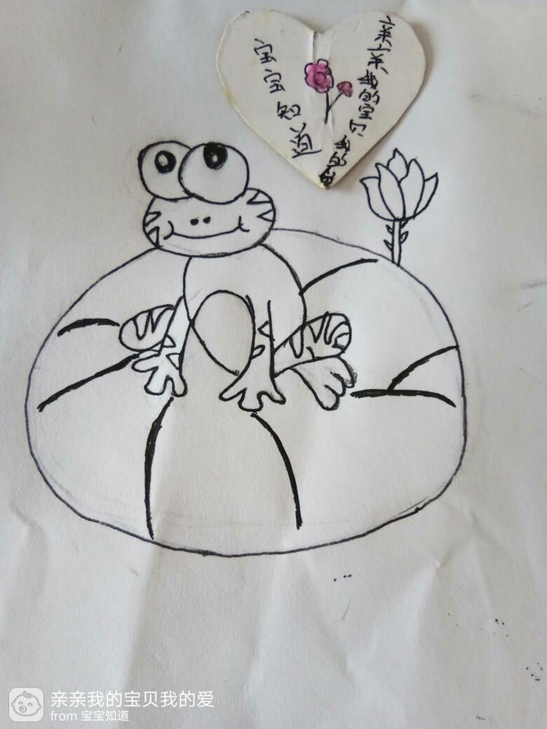 步骤13:有了荷叶,没有荷花怎倘逼脚么能行。再在荷叶的旁边画上荷花。荷叶上的青蛙就好了,如图所示。