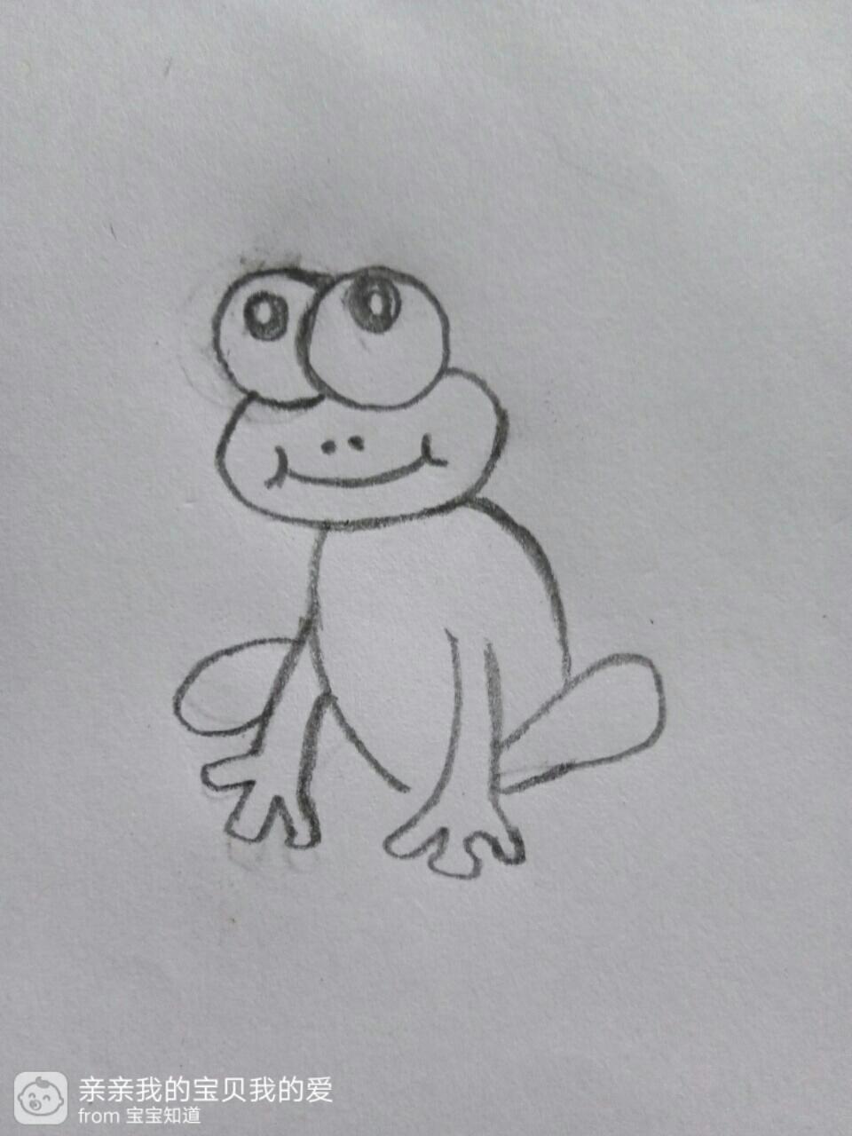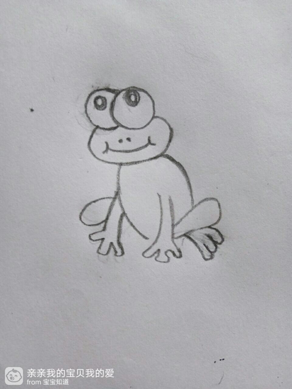 步骤4:再给青蛙画上它的身子,在头部下画上两条弧线,作为它的身子,如图所示。