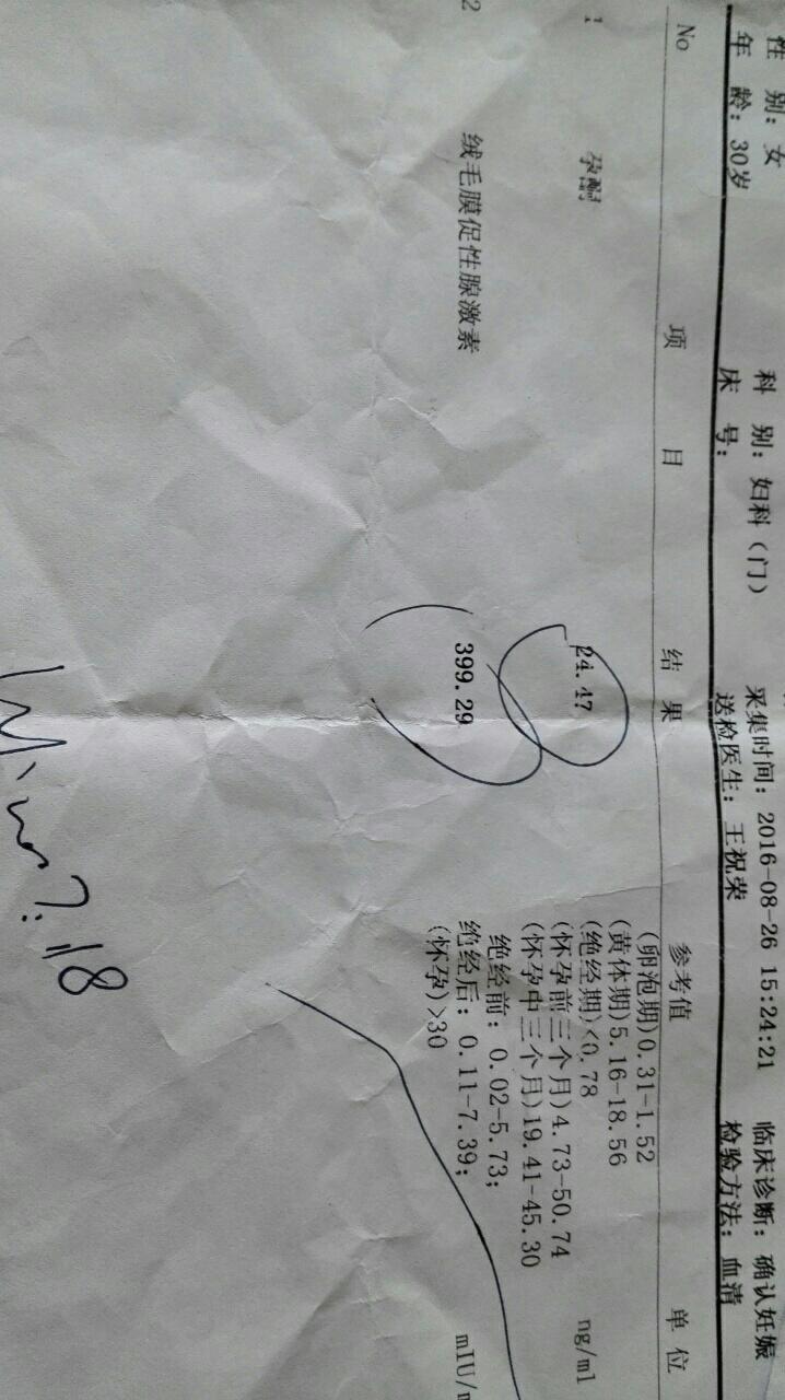 宝宝8岁8个月19天 LV.5我38天检查孕酮24, hcg399。48天时孕酮37, hcg两万多。过一周再去验血hcg翻倍就是好的。放心吧。