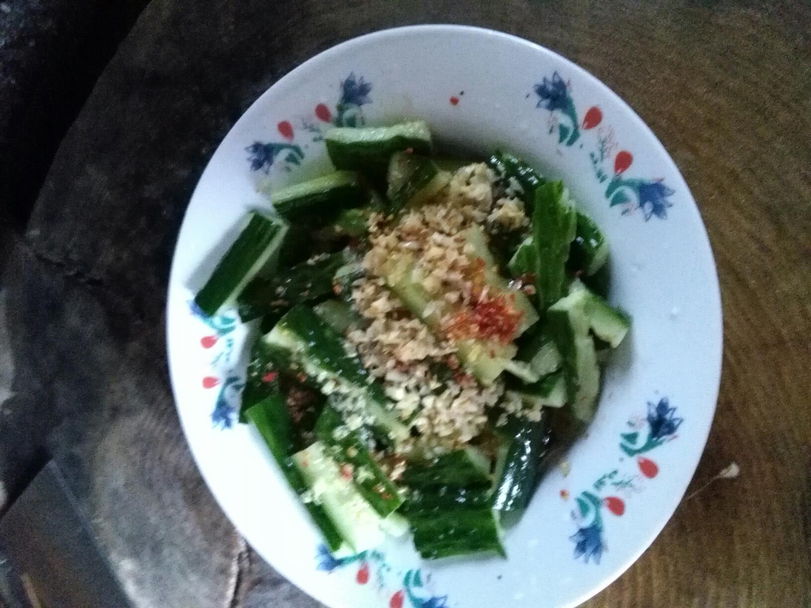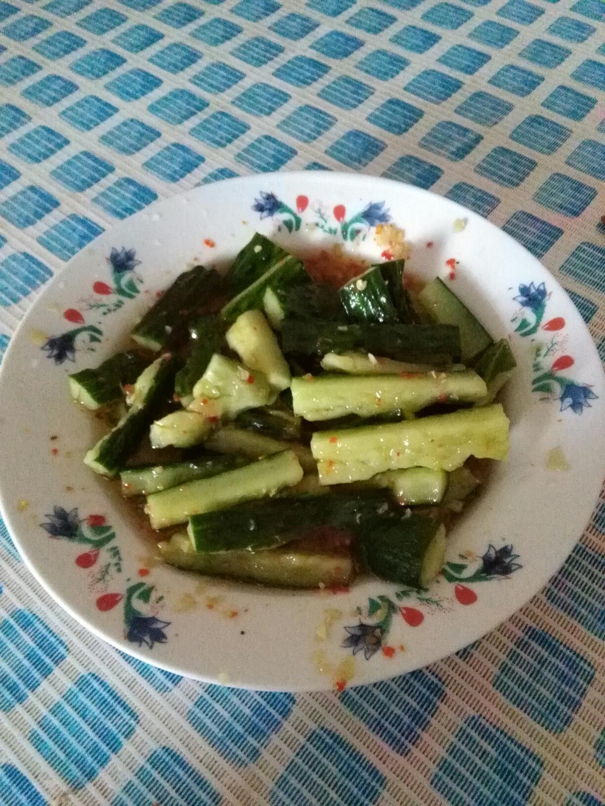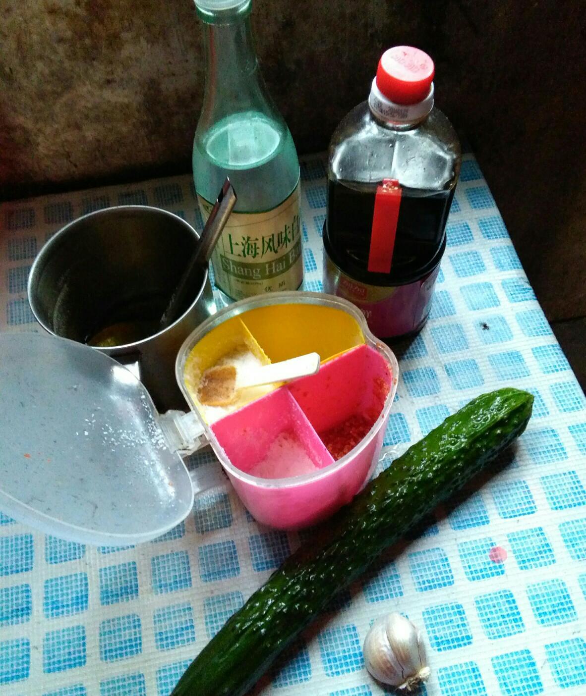 黄瓜,盐,味精,辣椒,生抽,醋,(大蒜忘拍到)