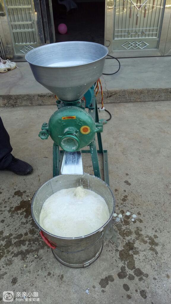 以往磨豆腐都是用石磨子,人工推着转圈儿,如今石磨被电磨替换,人们也乐的轻松,几分钟的时间黄豆就被磨成了糊状。